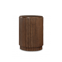 A warm, textured accent with timeless appeal. This mid-century modern side table features a beautifully carved, fluted wood base and a smooth round top, bringing organic style and subtle sophistication to any setting.